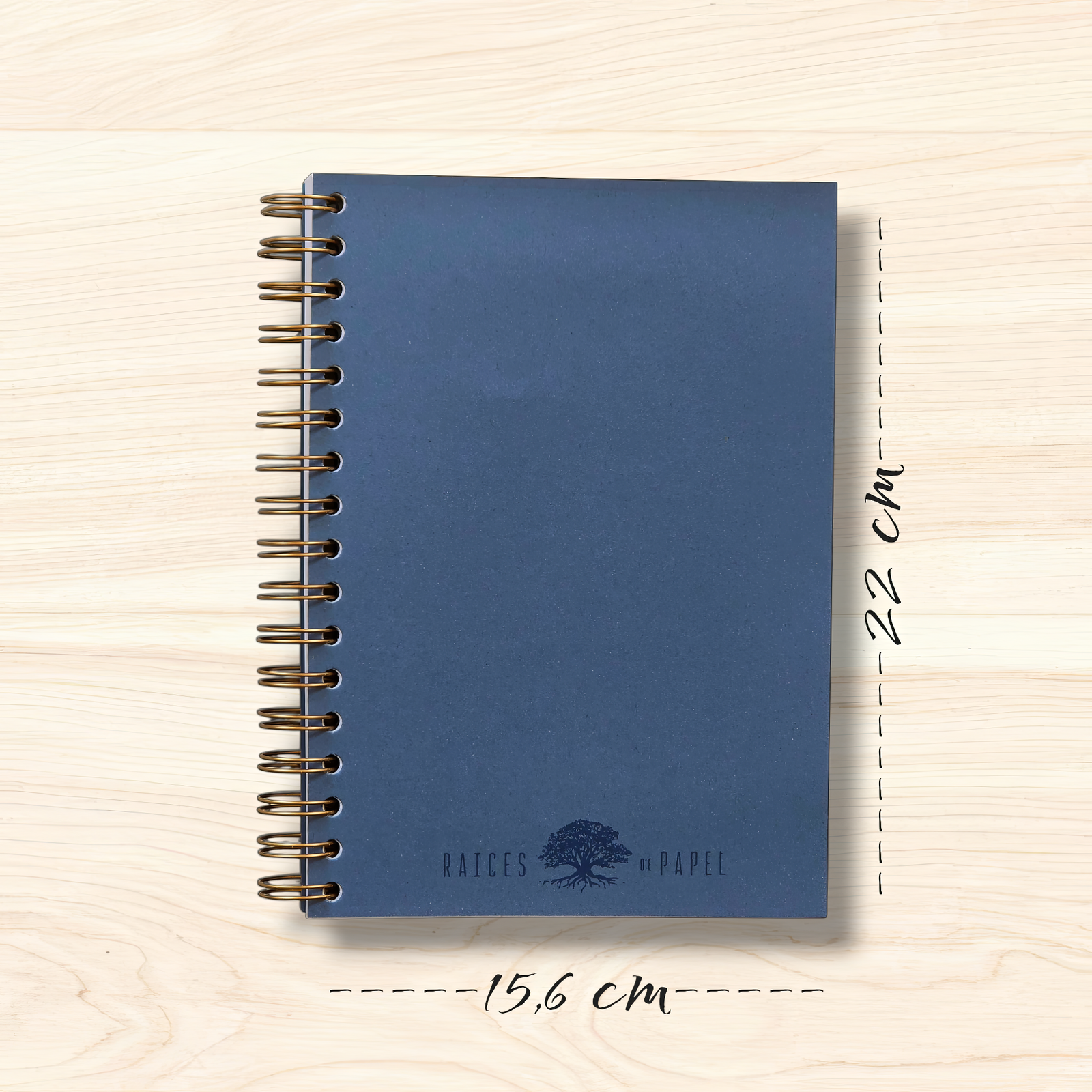 Tapa elaborada con residuos orgánicos de lavanda y fibras recicladas, y papel reciclado en su interior. Impreso con tinta ecológica y fabricado con energía verde.